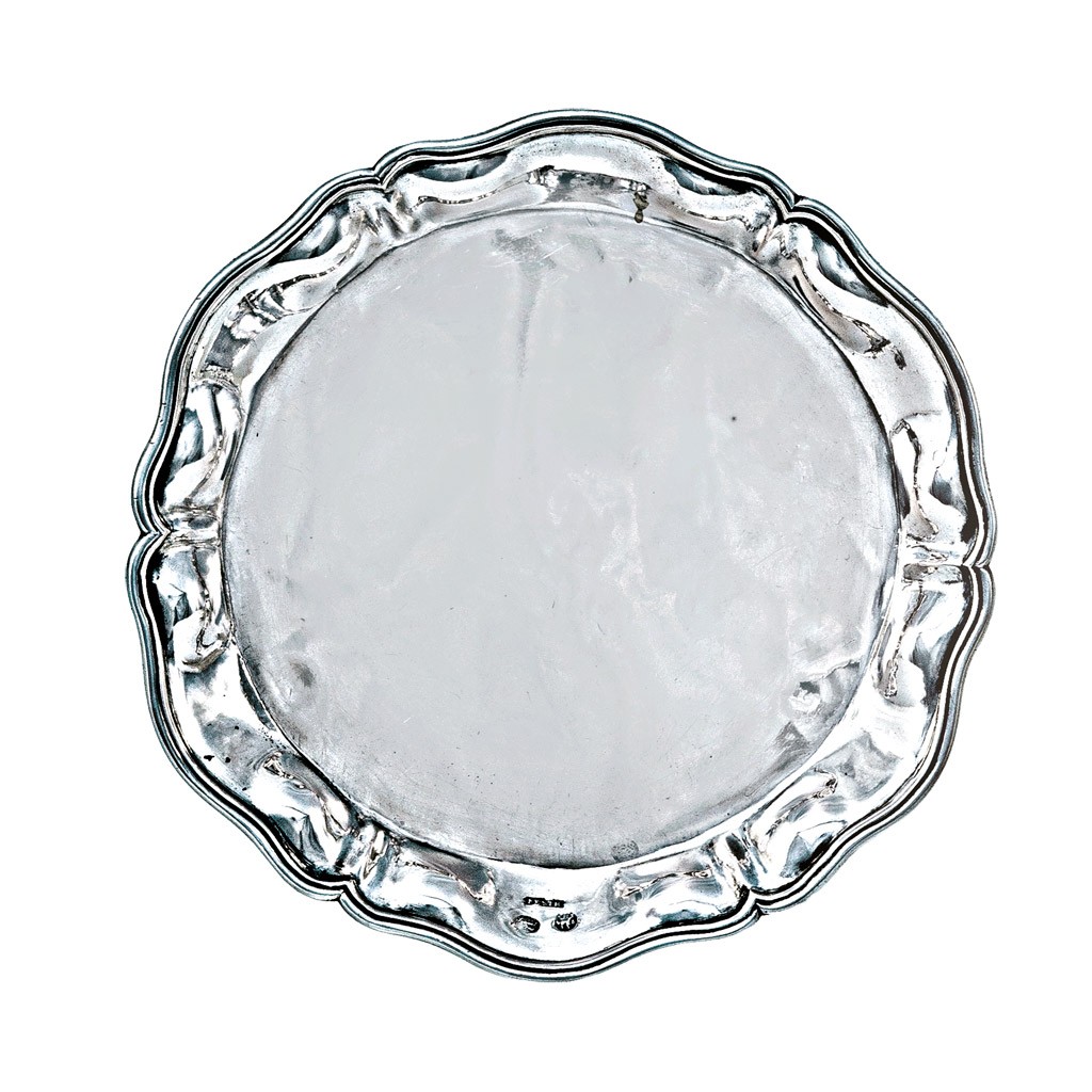 Pest, 1830 körül, elmosódott 13 latos antik ezüst jellel és Pesth bélyegzővel, Szentpéteri mesterjegy, 3 golyó lábon álló, hullámzó peremű kerek tálka, apró hibával, Kőszeghy Nr. 418., 467., 506.