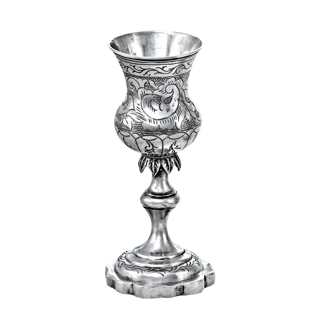 orosz,1875, 84 zlotnyikos ezüst, TT próbálómester és "AI" cirill betűs mesterjegy, kalapált talpon, kecses szár, vésett hullámponcolt díszítéssel
