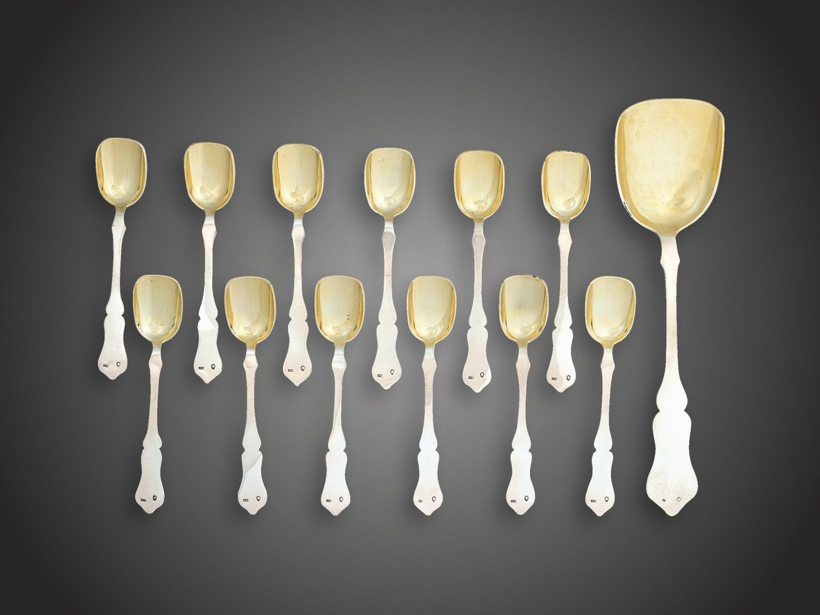 Tizenkét személyes fagylaltos készlet, ezüst, 448 g.