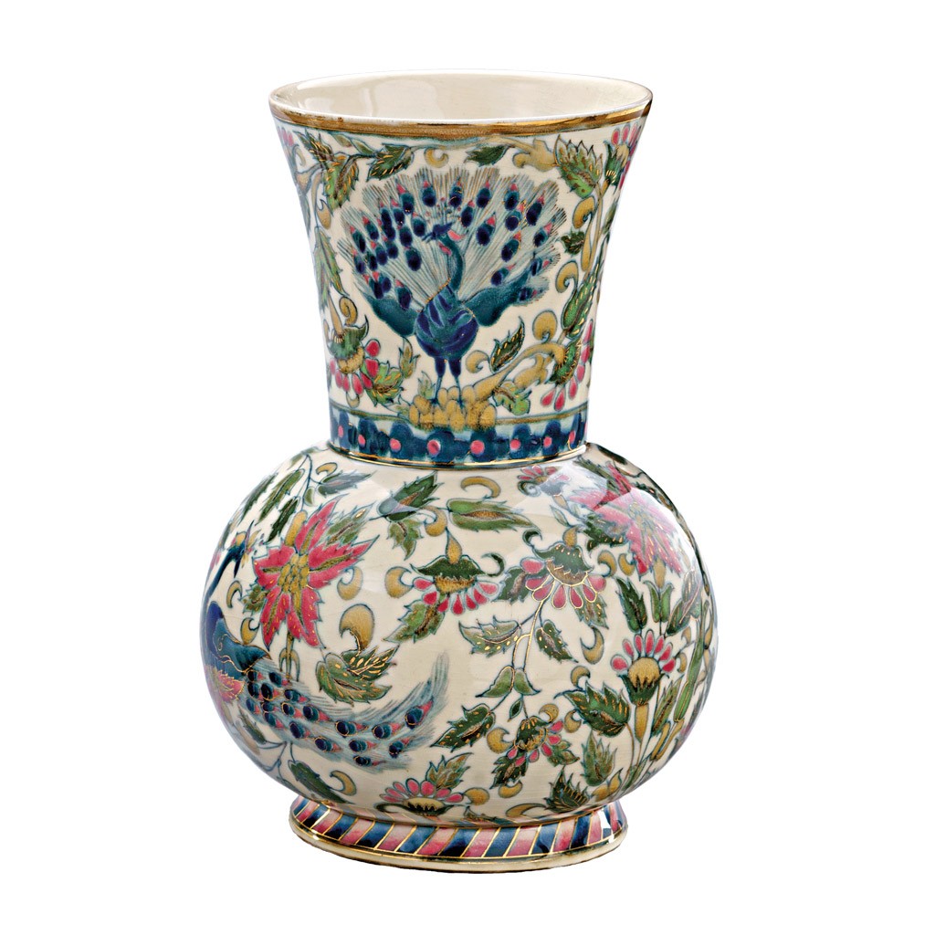 Zsolnay gyár, Pécs, 1890 körül, festett, aranyozott fehércserép, jelezve az alján a testvérek jelével