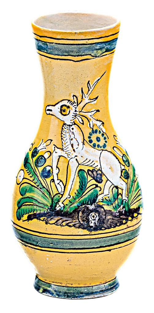 Ószombat, 18. sz. második fele, ónmázas fajansz, restaurált, m: 22 cm
