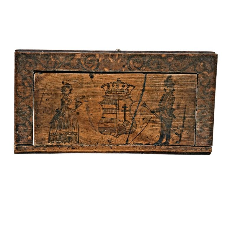 Kikiáltási ár: 36 000 FtNógrád megye, 19. sz. második fele, fenyőfa faragott díszítéssel, címerábrázolással, 98*190,5*59 cm