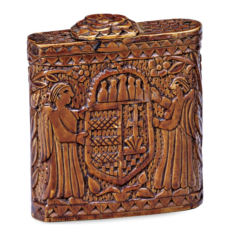 Nógrád megye, 19. sz. második fele, fenyőfa faragott díszítéssel, címerábrázolással, 98*190,5*59 cm