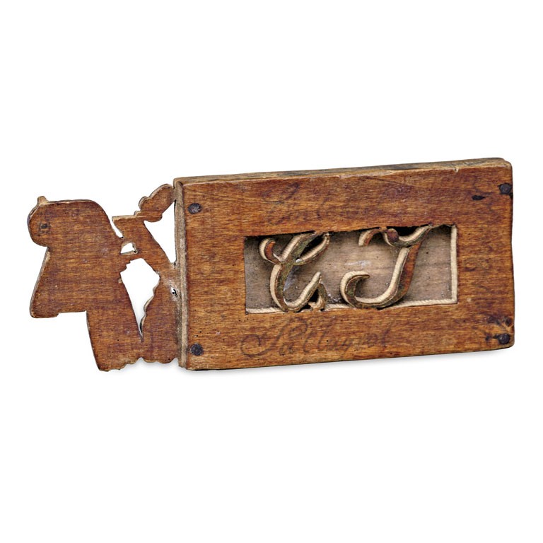 Alföld, 19. sz. vége, faragott festett fa, CsJ monogrammal h: 14,5 cm