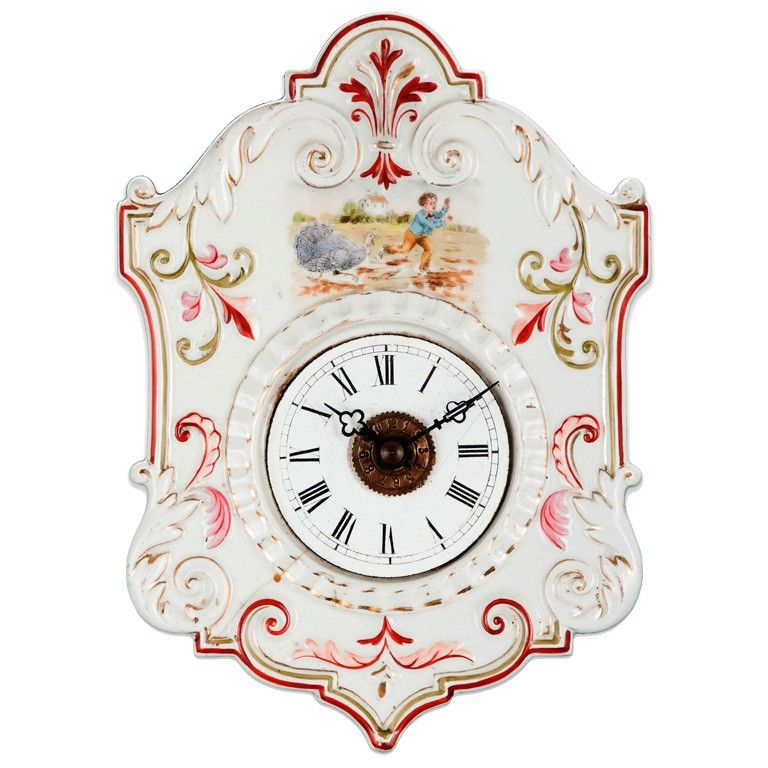 Ausztria, 19. sz. vége, porcelán előlap, kétsúlyos szerkezet, m: 28,5 cm