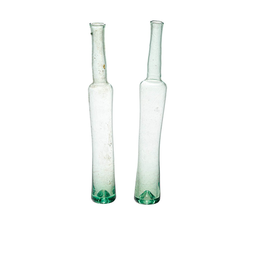 Erdély, 19. sz. eleje, zöldes hutaüveg, m: 18,5 cm
