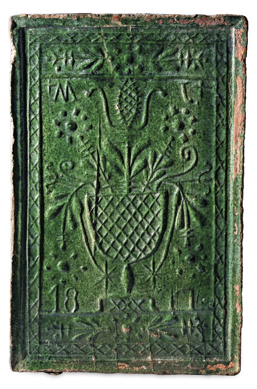 Kalotaszeg (Almás), 1877, mázas cserép, "MJ" monogrammal, kis repedéssel, 31*20 cm