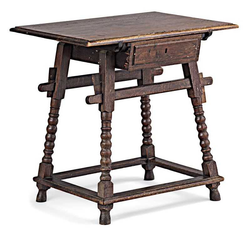 osztrák, 19. sz. második fele, tömör tölgyfa, esztergált lábakkal, egy fiókkal 76*59,5*77,5 cm