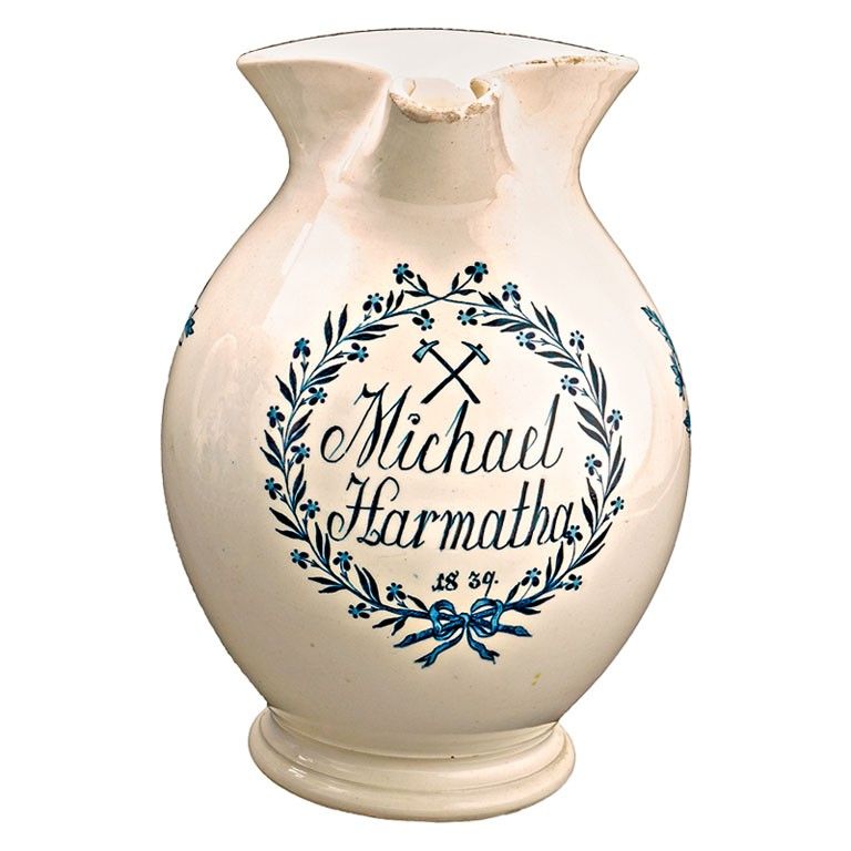 magyar, 1900 körül, festett kőcserép, "MICHAEL HARMATHA 1839" felirattal, sérült, m: 25 cm