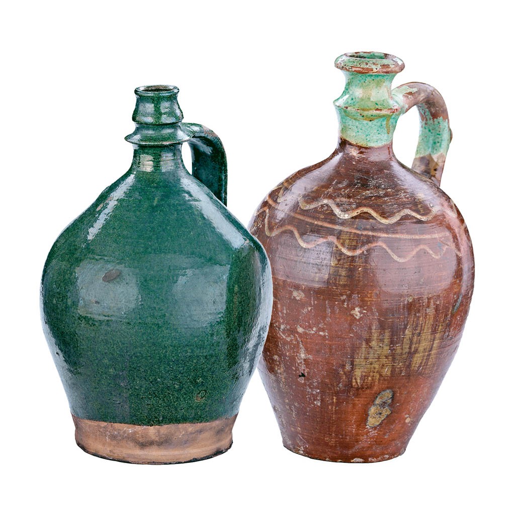Csákvár és Tótkomlós, 19. sz. vége, mázas cserép, apró sérüléssel, m: 30 és 33,5 cm
