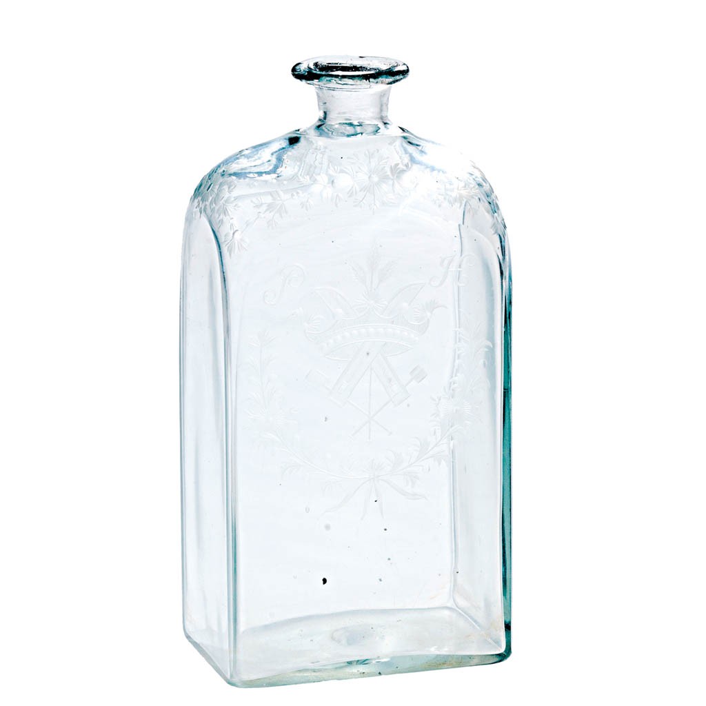 Zemplén, 19. sz. második fele, színtelen hutaüveg, csiszolt díszítéssel, m: 23,5 cm