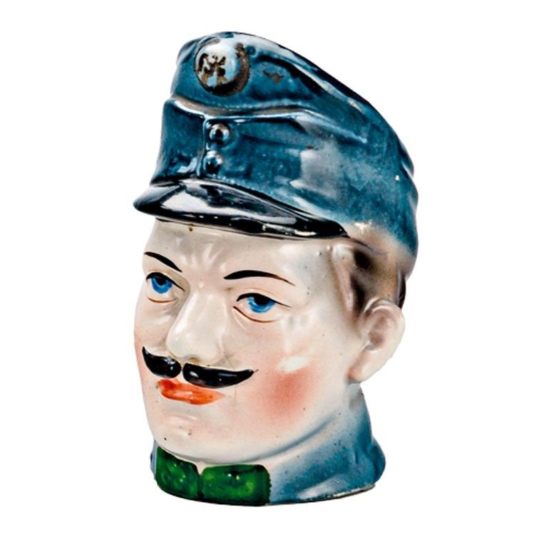magyar?, 1914-1916, festett, mázas keménycserép, j.n., kis sérüléssel, m: 14,5 cm