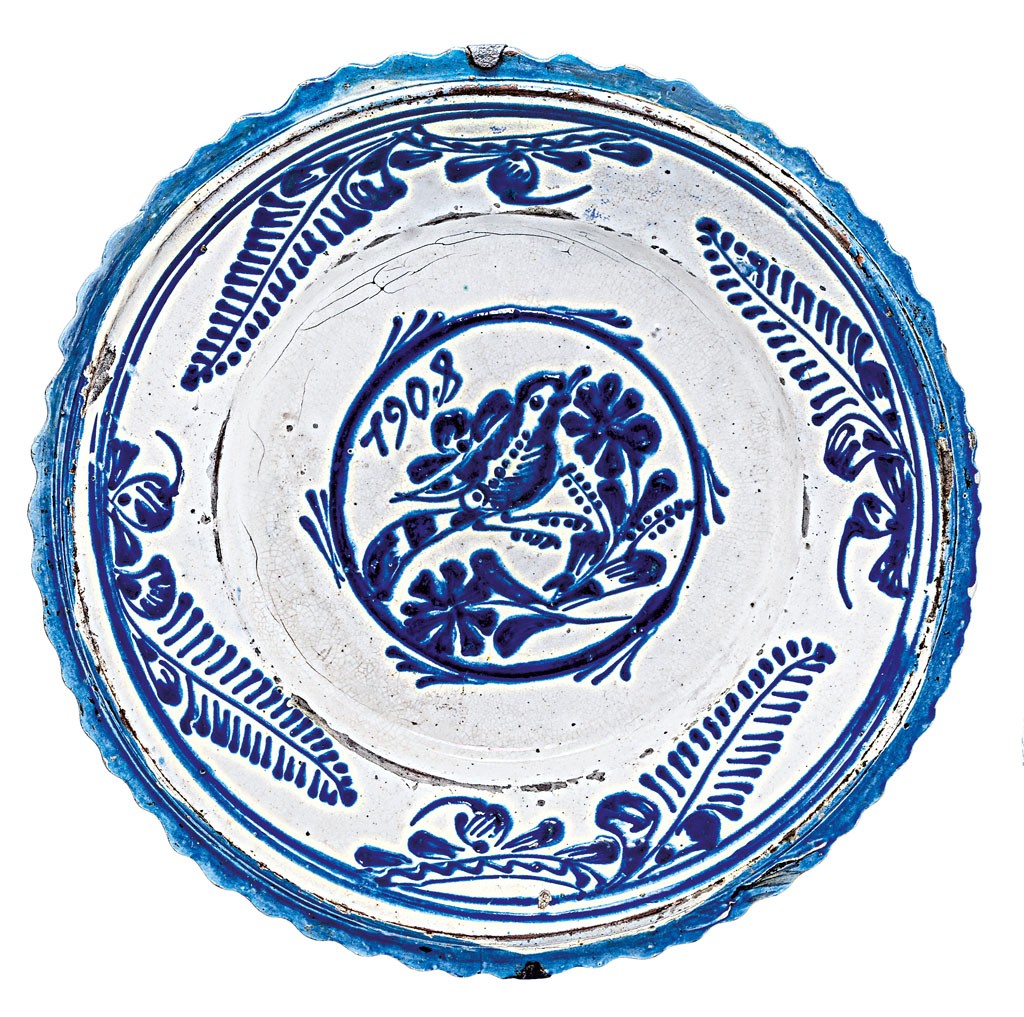 Torda, 1908, mázas cserép, restaurált, d: 29,5 cm