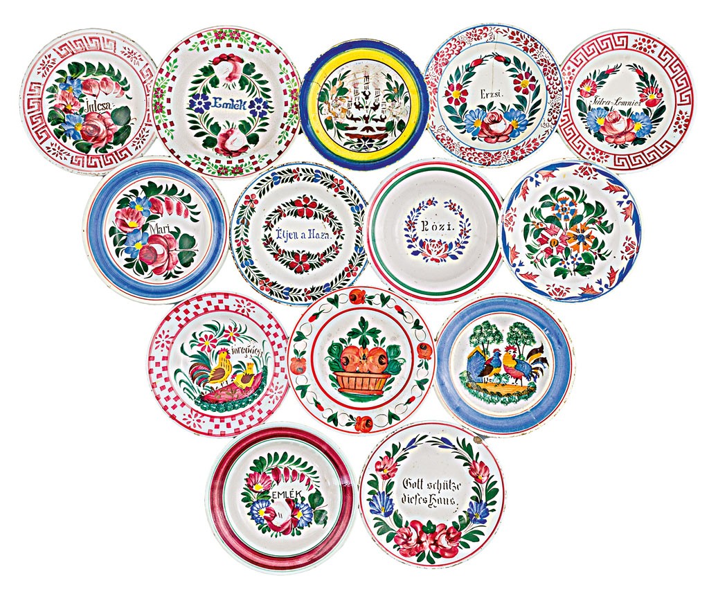 Hollóháza és Apátfalva, 1900 körül, festett keménycserép, sérült, d: 24 cm