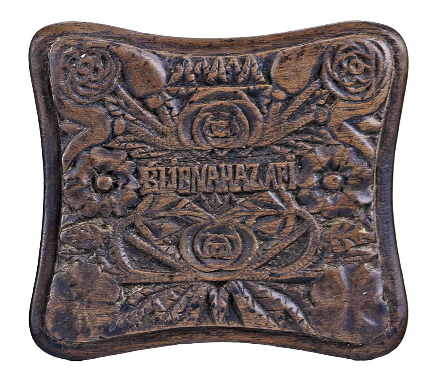 Somogy megye, 19. sz. második fele, faragott vésett fa, "ÉLJEN A HAZA" felirattal, 8,5*9,5 cm