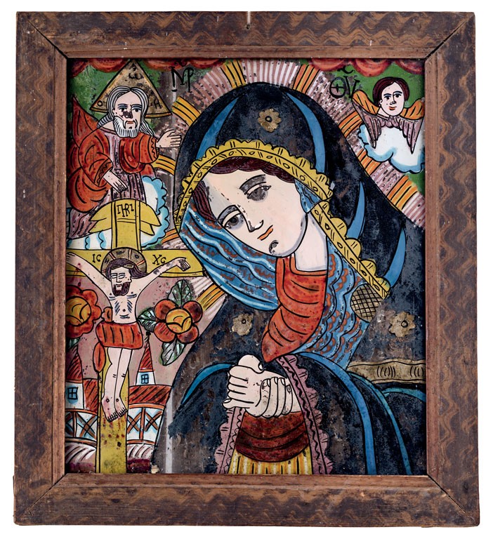 Fogaras, 19. sz. második fele, festett üveg, festése hiányos 50*44 cm