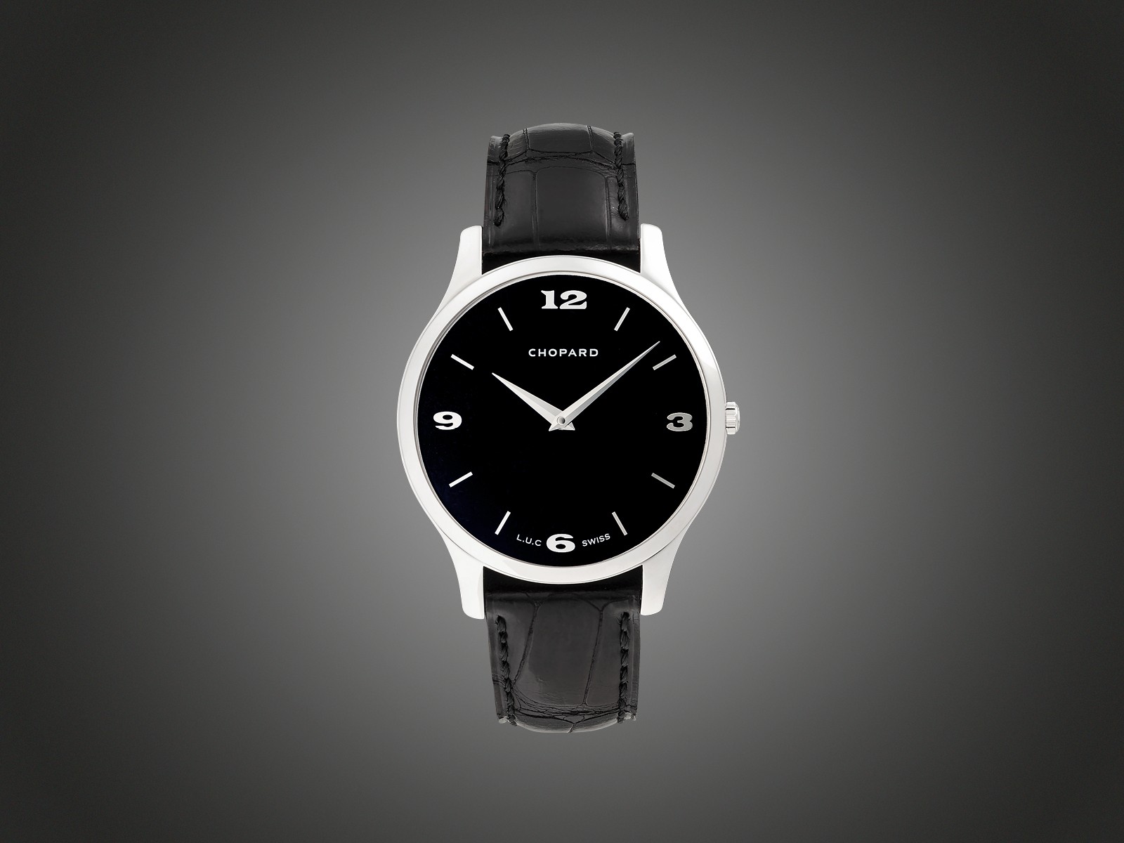 Fehérarany 750 óratok és csatvég eredeti bőr szíj, fekete számlap arab szá mokkal. 30 méterig vízállótok tükröződés mentes zafírüveggel. 32 köves automata szerkezet (Luc96HM), 65 órás járástartalékkal. Jelzett: Chopard, referenciaszám: 16/1902, szériaszám