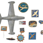 10db klf repülős fém jelvény + 11db repüléssel kapcsolatos képeslap (2xklf) + egy kisméretű fém repülőgép modell (~108x123mm) T:2<a href="https://www.darabanth.com/hu/gyorsarveres/435/kategoriak~Numizmatika/Falerisztika-Kituntetesek-jelvenyek~150003