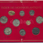 10xklf antik érme múzeumi replikája, hátoldalán az adott érme ismertetése, sérült karton díszlapon T:1<a href="https://www.darabanth.com/hu/gyorsarveres/431/kategoriak~Numizmatika/Replikak-es-hamisitvanyok~1500023/10xklf-antik-erme-muzeumi-replikaja
