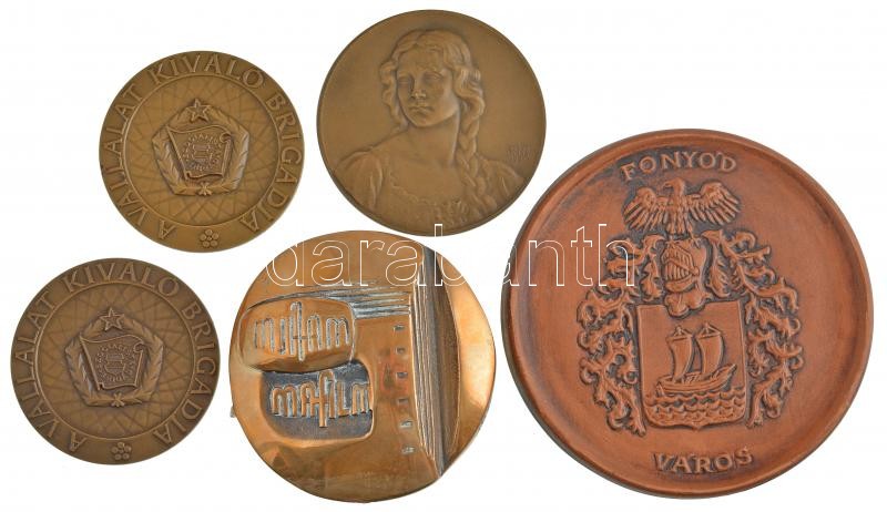 11db-os vegyes, főleg magyar emlékérem, plakett tétel, közte Kiss Nagy András (1930-1997) ~1980-1990. ‘MAFILM (Magyar Nemzeti Filmalap Zrt.)’ törzsgárda(?) fém plakett márványtalp nélkül (~88mm), Berán Lajos (1883-1943) 1949. ‘Budapesti Emlék – M.O.A.T.SZ