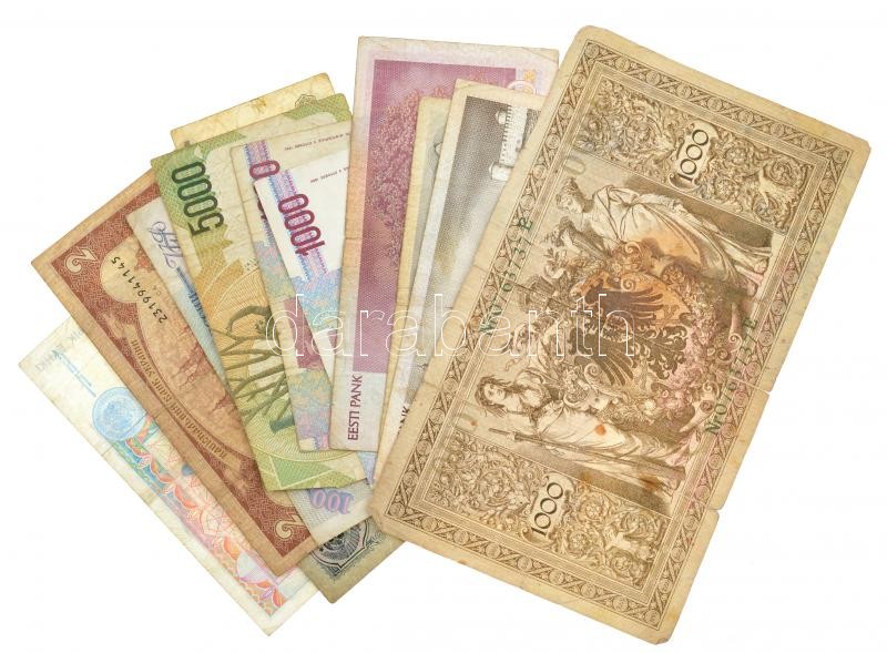 12db-os vegyes külföldi bankjegy tétel, közte Észtország, Kazahsztán, Ukrajna stb. T:III,III- szakadás, folt 12pcs of mixed foreign banknote lot, in it Estonia, Kazahstan, Ukraine etc. C:F,VG tear, spot
