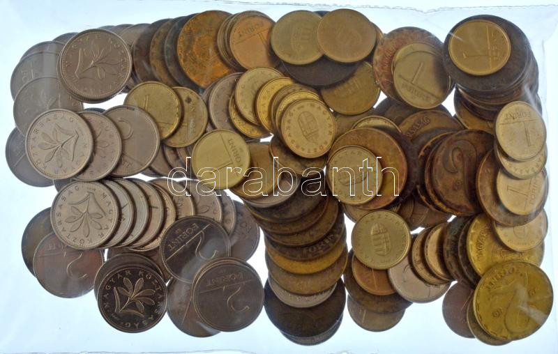 ~146db-os vegyes 1 és – 2 Forintos érmetétel T:vegyes<a href="https://www.darabanth.com/hu/gyorsarveres/438/kategoriak~Numizmatika/Magyar-es-magyar-verdejelu-fem-es-ezustpenzek~1500008/7E146db-os-vegyes-1-es-2-Forintos-ermetetel-Tvegyes~II2856513/?u