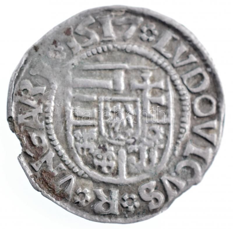 1517K-G Denár Ag ‘II. Lajos’ (0,55g) T:2,2- patina, kis peremhiány Hungary 1517K-G Denar Ag ‘Louis II’ (0,55g) C:XF,VF patina, small part of the edge is missing Huszár: 841., Unger I.: 673.m<a href="https://www.darabanth.com/hu/gyorsarveres/415/kate