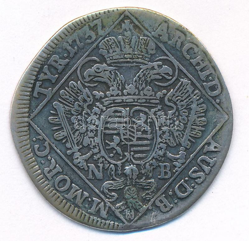 1737N-B 1/4 Tallér Ag ‘III. Károly’ Nagybánya (6,50g) T:2- patina, lyuktömött Hungary 1737N-B 1/4 Thaler Ag ‘Charles III’ Baia Mare (6,50g) C:VF patina, plugged hole Huszár: 1623.; Unger II.: 1194.