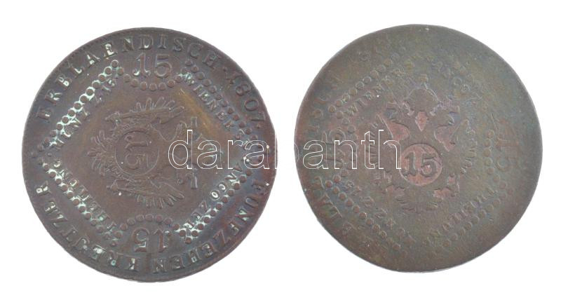 1807B 15kr Cu ‘I. Ferenc’ + 1807S 15kr Cu ‘I. Ferenc’ T:2-,3