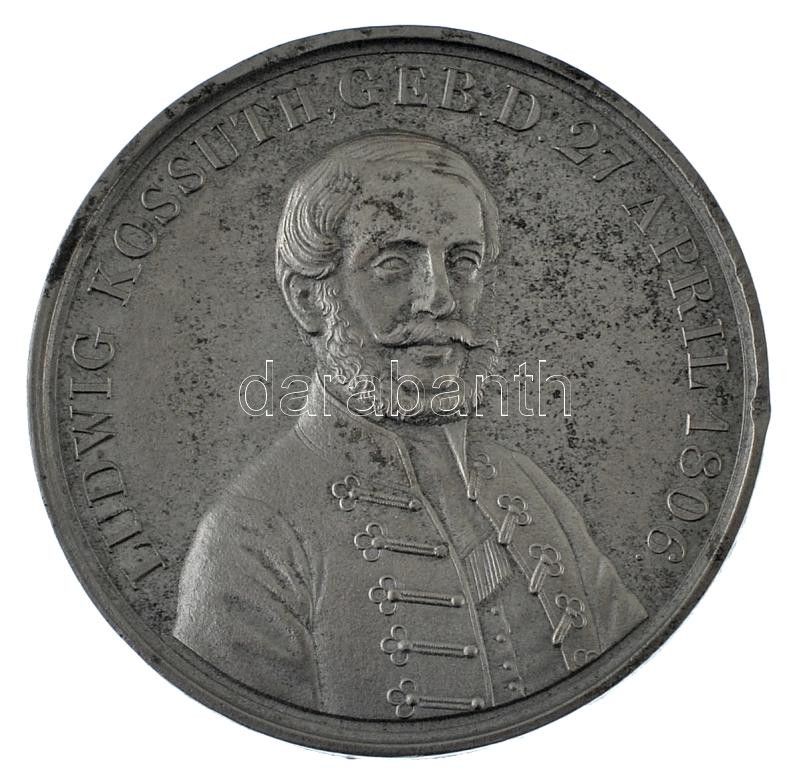 1849. ‘LUDWIG KOSSUTH GEB. D. 27. APRIL 1806 / GOTT BESCHÜTZE UNGARN (Kossuth Lajos született 1806 április 27-én / Isten óvja Magyarországot)’ kétoldalas Sn emlékérem (41mm) T:XF ph<a href="https://www.darabanth.com/hu/gyorsarveres/440/kategoriak~Nu