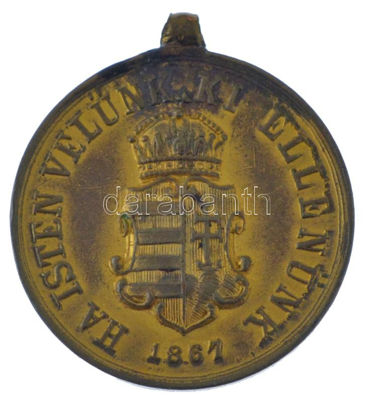 1867. ‘Deák Ferencz a vezérek vezére / Ha Isten velünk, ki ellenünk’ aranyozott bronz emlékmedál füllel. Szign.: A.K. (19mm) T:AU kopott aranyozás