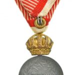 1890. ‘Ezüst Katonai Érdemérem a katonai érdemkereszt szalagján’ aranyozott Br és hadifém kitüntetés, eredeti, fakó szalagon T:2- peremén kis sérülés Hungary 1890. ‘Silver Military Merit Medal on a war ribbon’ gilt Br and war metal decoration with origina