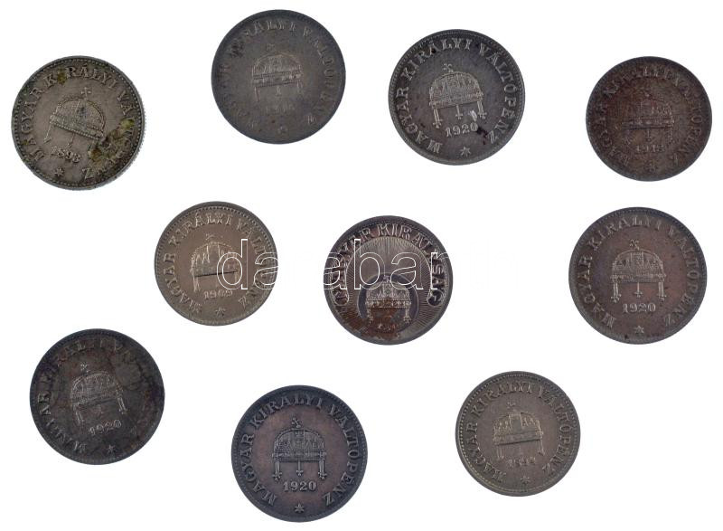 1893KB 20f Ni + 1894KB 10f Ni + 1909KB 10f Ni + 1916KB 20f Fe + 1918KB 10f Fe + 1920KB 20f Fe (4db) + 1940. 10f Fe T:1–3<a href="https://www.darabanth.com/hu/gyorsarveres/434/kategoriak~Numizmatika/Magyar-es-magyar-verdejelu-fem-es-ezustpenzek~1500