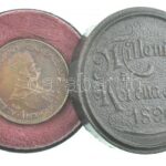 1896KB 1K Ag ‘Millenium’ eredeti sötétbarna ‘Millenniumi Koronaérem – 1896’ díszdobozban T:1- patina / Hungary 1896KB 1 Korona Ag ‘Millennium’ in original, brown case C:AU patina Adamo K5.2