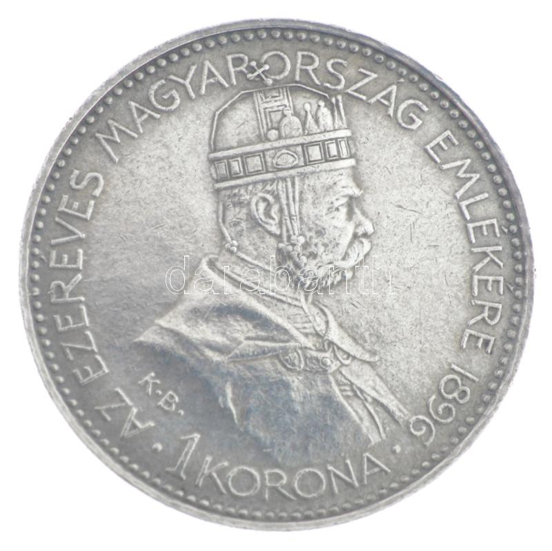 1896KB 1K Ag ‘Millennium’ eredeti, dombornyomott, bordó színű ‘Millenniumi Koronaérem – 1896’ díszdobozban T:1- kis patina, kopott doboz Hungary 1896KB 1 Korona Ag ‘Millennium’ in original, embossed, burgundy case C:AU small patina, worn case Adamo K5.2<