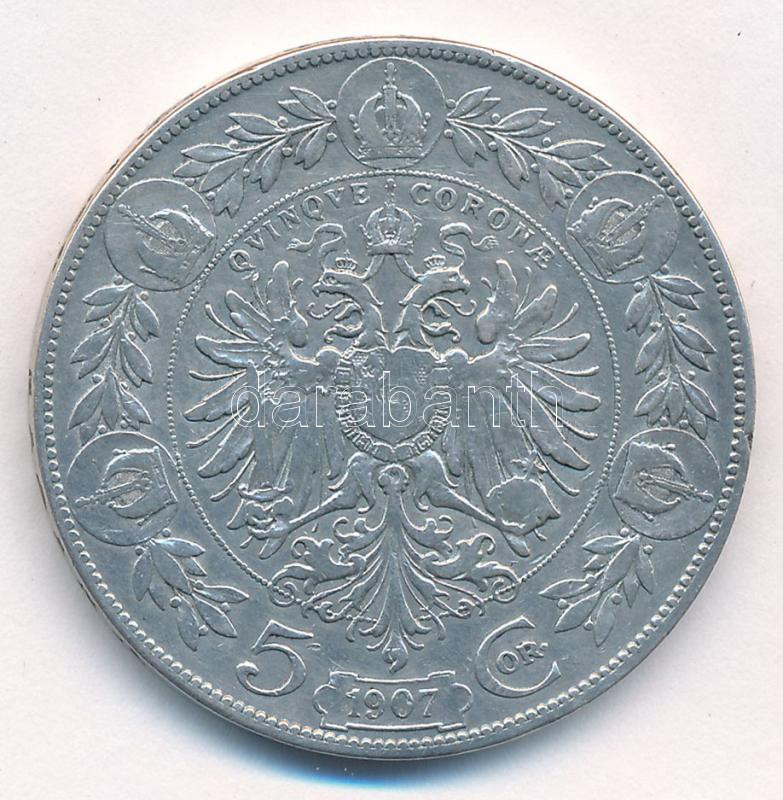 1907. 5K Ag ‘Ferenc József’ T:2- Adamo K7<a href="https://www.darabanth.com/hu/gyorsarveres/432/kategoriak~Numizmatika/Kulfoldi-fem-es-ezustpenzek~1500015/1907-5K-Ag-Ferenc-Jozsef-T2–Adamo-K7~II2767109/?utm_source=affiliate&utm_medium=mutargy&utm_