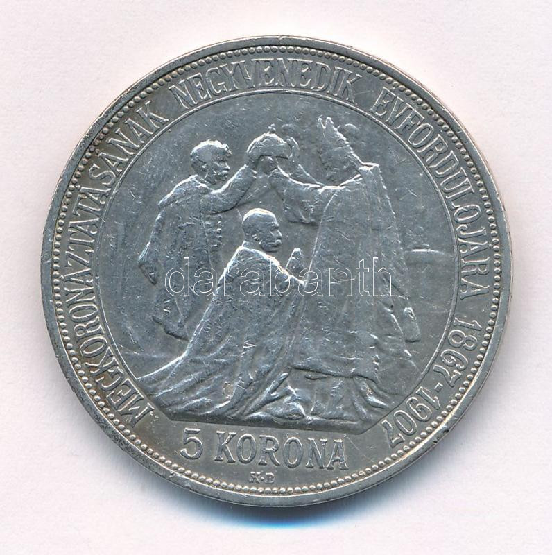 1907KB 5K Ag ‘Ferenc József koronázásának 40. évfordulója’ T:2- ph. Adamo K7.1<a href="https://www.darabanth.com/hu/gyorsarveres/435/kategoriak~Numizmatika/Magyar-es-magyar-verdejelu-fem-es-ezustpenzek~1000008/1907KB-5K-Ag-Ferenc-Jozsef-koronazasana