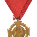 1908. ‘Katonai Jubileumi Kereszt’ aranyozott bronz kitüntetés, modern vörös mellszalaggal T:2 kissé kopott aranyozás Hungary 1908. ‘Diamond Jubilee Cross for the Armed Forces’ gilt bronze decoration with modern red ribbon C:XF slightly worn