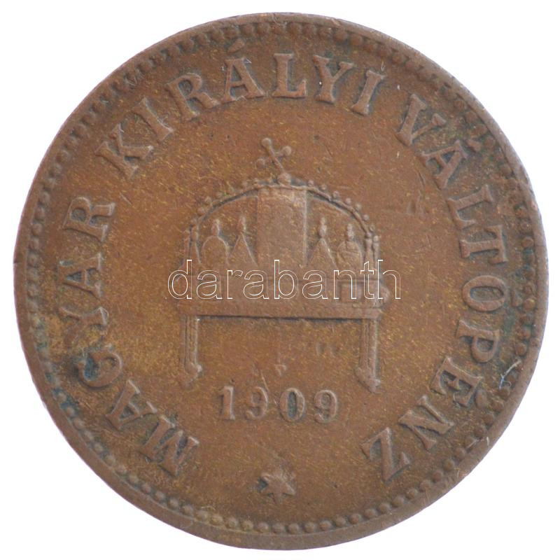1909KB 2f bronz ‘Magyar Királyi Váltópénz’ T:2- patina, kis ü. Adamo K4<a href="https://www.darabanth.com/hu/gyorsarveres/435/kategoriak~Numizmatika/Magyar-es-magyar-verdejelu-fem-es-ezustpenzek~1000008/1909KB-2f-bronz-Magyar-Kiralyi-Valtopenz-T2-pa