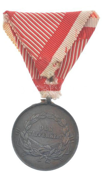 1914. ‘Ferenc József Bronz Vitézségi Érem’ hadifém kitüntetés mellszalaggal T:1- több helyen anyagfelesleg Hungary 1914. ‘Bronze Gallantry Medal’ war metal decoration with ribbon C:AU excess material NMK 137.<a href="https://www.darabanth.com/hu/gy