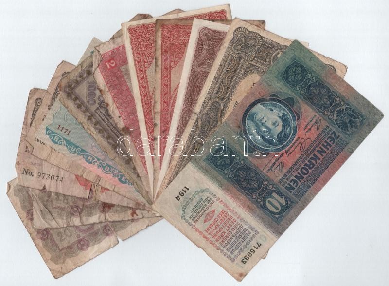 1915-1922. 12db-os bankjegytétel (8db magyar és 4db osztrák), több felülbélyegzéssel T:III-V