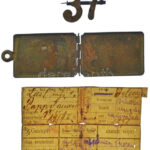 1916. ’37 (37. számú gyalogezred)’ Cu jelvény + nyitható magyar katonai dögcédula, belül belekarcolt szöveggel (Papp Sándor, K.u.K. JR 37′ és a hozzá tartozó személyi papírral T:XF / Hungary 1916. ’37 (Infantry Regiment No. 37)’ Cu badge + dog tag with do