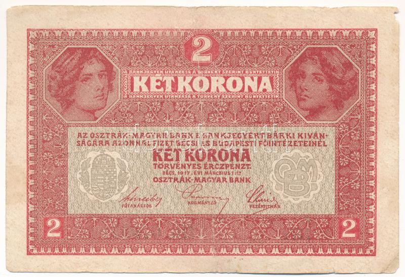 1917. 2K ‘7000 feletti sorozatszám’ T:F kis anyaghiány Adamo K6<a href="https://www.darabanth.com/hu/gyorsarveres/440/kategoriak~Numizmatika/Magyar-bankjegyek~1500007/1917-2K-7000-feletti-sorozatszam-TF-kis-anyaghiany-Adamo-K6~II2888177/?utm_source=