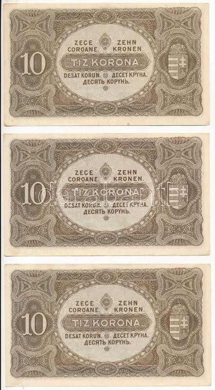 1920. 10K (3x) sorszámkövetők ‘a 030 456.195 – a 030 459.197’ T:I- Adamo K14<a href="https://www.darabanth.com/hu/gyorsarveres/414/kategoriak~Numizmatika/Magyar-bankjegyek~2000007/1920-10K-3x-sorszamkovetok-a-030-456195-a-030-459197-TI–Adamo-K14~II