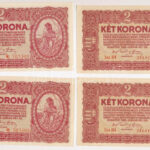 1920. 2K (2x) sorszámkövetők ‘2 aa 014 244.812 – 2 aa 014 244.813’ + 1920. 2K (2x) sorszámkövetők ‘2 ab 025 * 703408 – 2 ab 025 * 703409’ csillagos sorszám + 1920. 10K (2x) sorszámkövetők ‘a 065 283.957 – a 065 283.958’ + 1920. 20K (2x) sorszámkövetők ‘2a