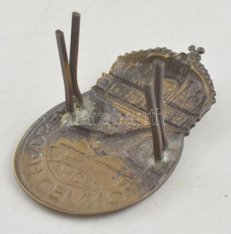 ~1920. Nemzeti hadsereg fém lemezjelvény változata ‘M. Kir. Honvéd Hadsereg’ felirattal (~47x30mm) T:1- kis patina<a href="https://www.darabanth.com/hu/gyorsarveres/431/kategoriak~Numizmatika/Militaria~1500019/7E1920-Nemzeti-hadsereg-fem-lemezjelven