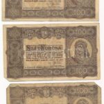1923. 100K (3db, 2xklf: nyomdahely jelöléssel és nélküle) T:III,III- Hungary 1923. 100 Korona (3pcs, 2xdiff: with printer’s mark and without it) C:F,VG Adamo K30<a href="https://www.darabanth.com/hu/gyorsarveres/411/kategoriak~Numizmatika/Magyar-ban