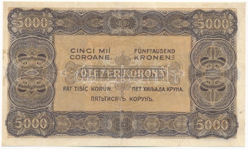 1923. 5000K nyomdahely jelölés nélkül, ‘5B17 219546’ T:III restaurált / Hungary 1923. 5000 Korona ‘5B17 219546’ C:F restored Adamo K39