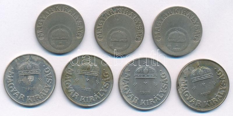1926. 20f Cu-Ni (3x) + 1938. 50f Cu-Ni (4x) T:1-,2 kis patina<a href="https://www.darabanth.com/hu/gyorsarveres/436/kategoriak~Numizmatika/Magyar-es-magyar-verdejelu-fem-es-ezustpenzek~1500008/1926-20f-Cu-Ni-3x-plus-1938-50f-Cu-Ni-4x-T1-2-kis-patina