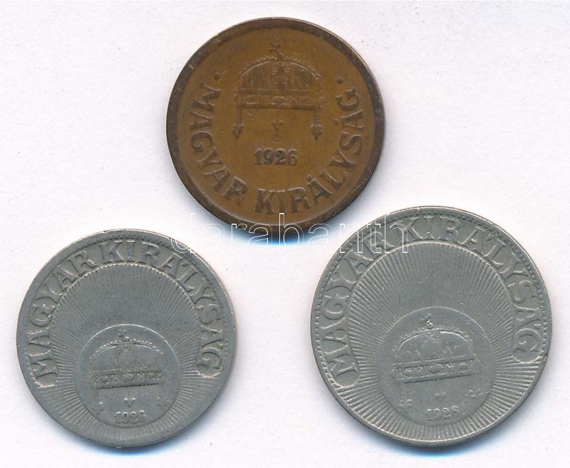 1926. 2f bronz + 10f Cu-Ni + 20f Cu-Ni T:2<a href="https://www.darabanth.com/hu/gyorsarveres/412/kategoriak~Numizmatika/Magyar-es-magyar-verdejelu-fem-es-ezustpenzek~1500009/1926-2f-bronz-plus-10f-Cu-Ni-plus-20f-Cu-Ni-T2~II2564242/?utm_source=affili